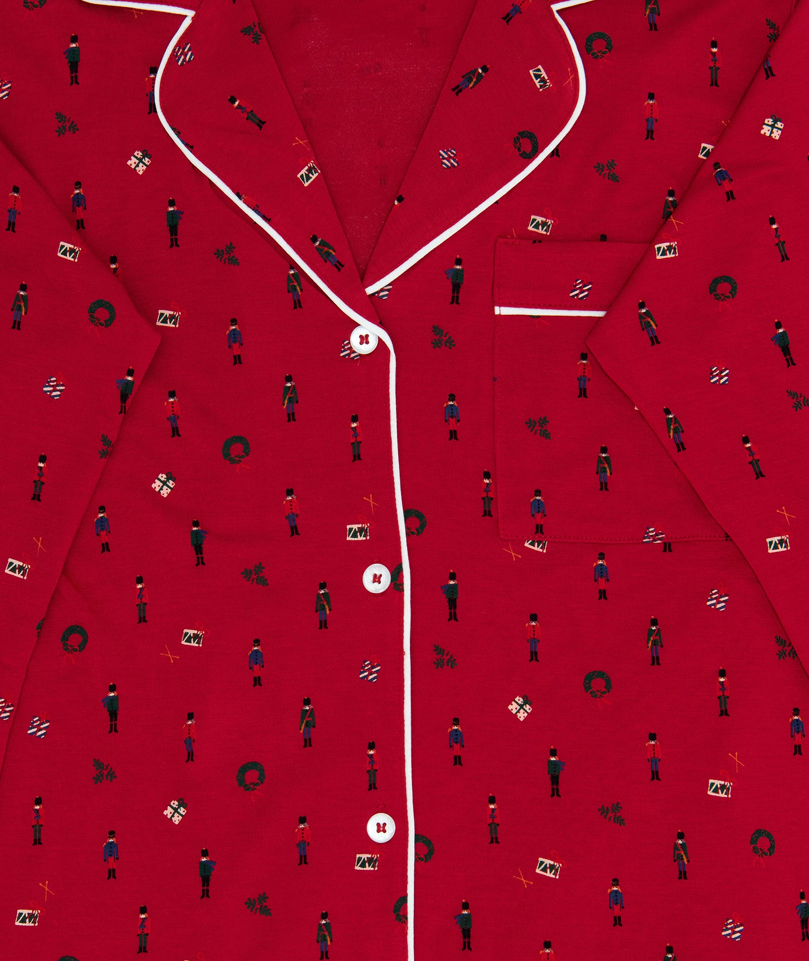 Eberjey Women Gisele Printed Long PJ Set Nutcracker Holly Red/Ivory With Ribbon